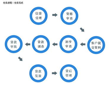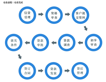 實(shi)訓主體分五(wu)類流程(cheng):短期貸(dai)款(kuan)(kuan)(kuan)、長期貸(dai)款(kuan)(kuan)(kuan)、票據貼現、個(ge)人住房抵押(ya)貸(dai)款(kuan)(kuan)(kuan)、個(ge)人汽車(che)消費貸(dai)款(kuan)(kuan)(kuan)。提供靈活的業務(wu)流程(cheng)控制,包括信貸(dai)受理、資(zi)格審(shen)查、貸(dai)款(kuan)(kuan)(kuan)調查、貸(dai)款(kuan)(kuan)(kuan)審(shen)批(pi)、落實(shi)條件、簽訂(ding)合(he)同、貸(dai)款(kuan)(kuan)(kuan)發放、貸(dai)后管理等步驟。